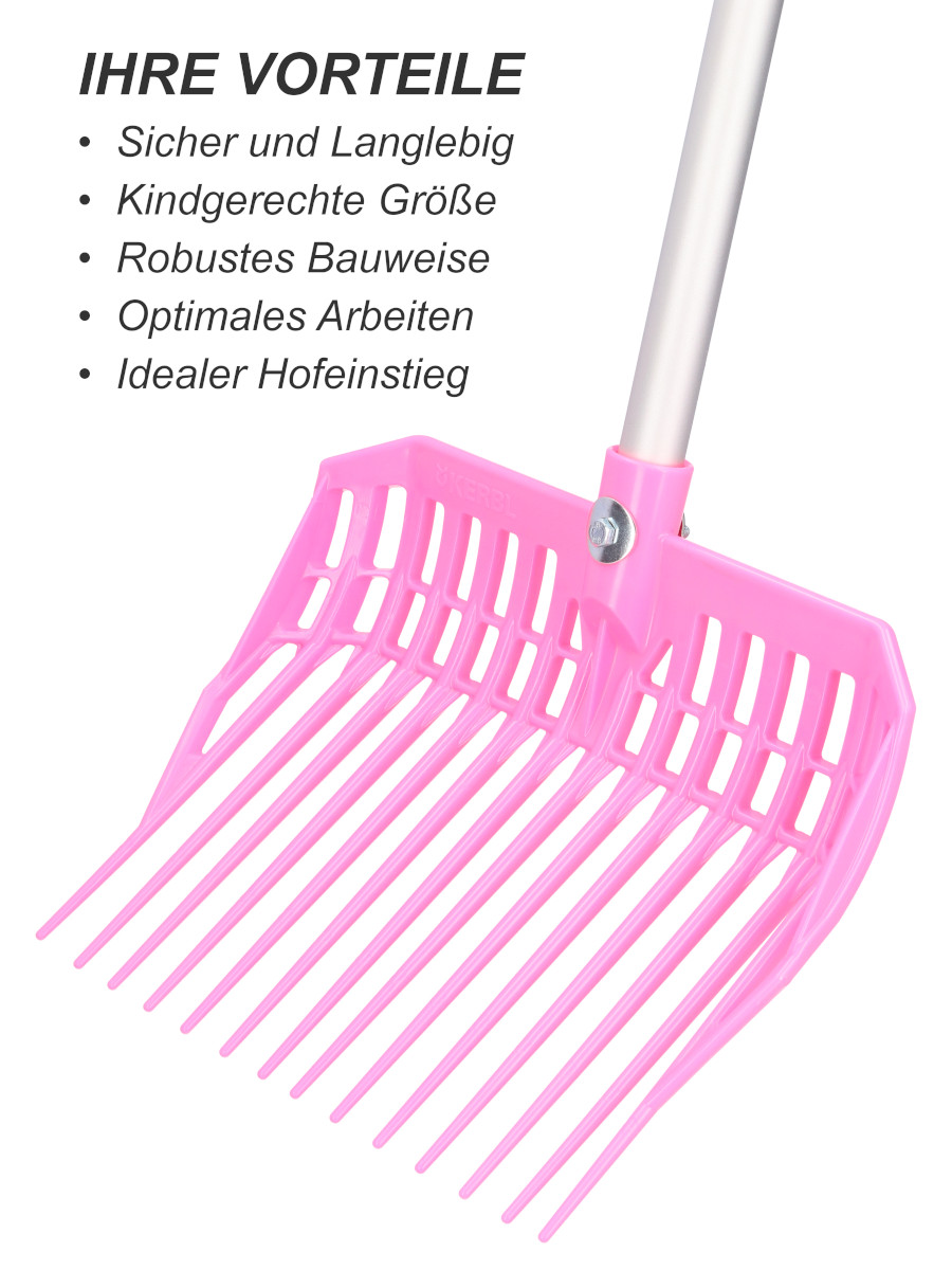 Die Kinder-Dunggabel EcoFork Mini ermöglicht es kleinen Hofhelfern ab 5 Jahren, spielerisch und sicher bei der täglichen Arbeit mitzuwirken. In kindgerechter Größe und mit attraktivem Design ist sie speziell auf die Bedürfnisse junger Anwender abgestimmt. So wird aus Helfen ein echtes Erlebnis mit Spaß, Bewegung und Verantwortungsgefühl.