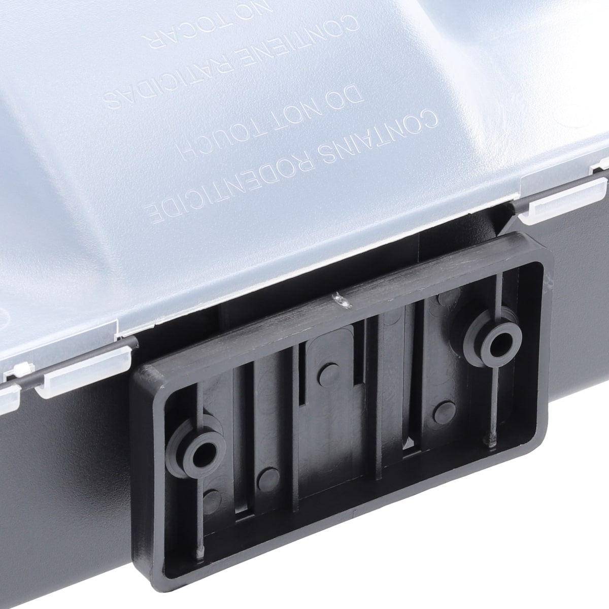 Das robuste, wetterfeste Kunststoffgehäuse mit zwei Zugängen ermöglicht eine schnelle und sichere Köderannahme durch Ratten und Mäuse: ideal für den Innen- und Außenbereich sowie für Feuchtgebiete. Der transparente Deckel erlaubt eine schnelle Fangkontrolle, ohne die Box zu öffnen, während die mitgelieferte Wandhalterung die Köderstation sicher fixiert und ein Verschleppen verhindert.