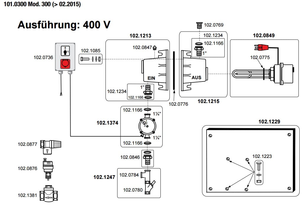 - 1x Suevia Einschraubheizkörper 3000W, 400V (Stecker rot) für Mod. 300 - 102.0849