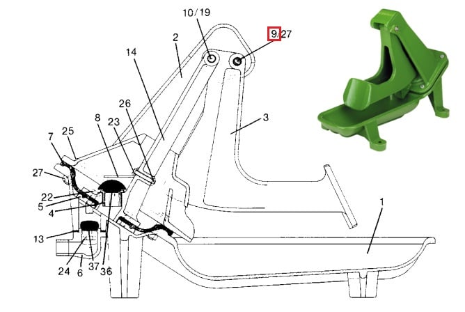 Lister Bolzen M10 mit zwei Sechskantmuttern für die Weidepumpe L3 (grün).