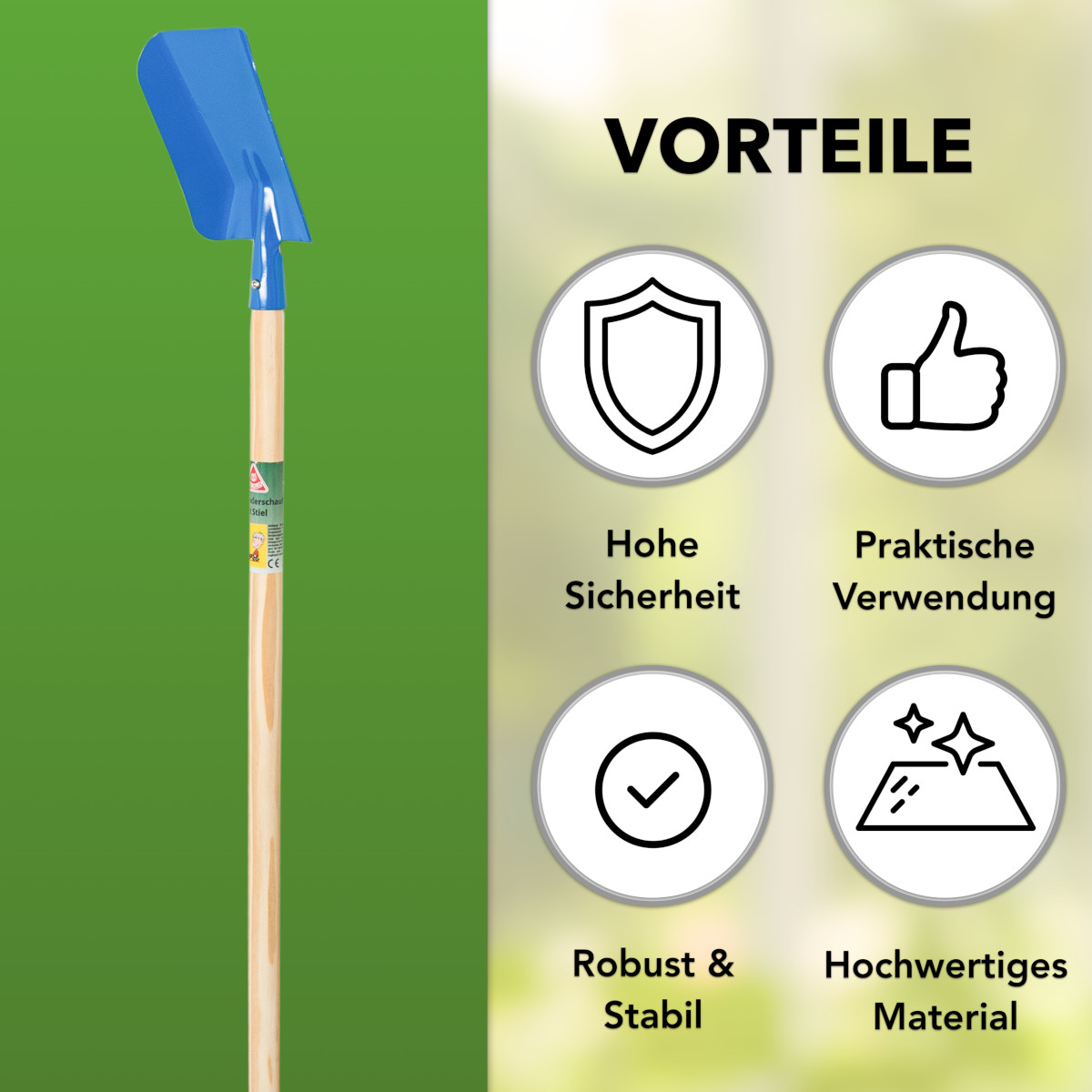 Die Schaufel besteht aus pulverbeschichtetem Metall und besitzt einen glatten Holzstiel (ca. 76 cm), der angenehm in der Hand liegt. Das strapazierfähige Material sorgt für hohe Stabilität und eine lange Lebensdauer – selbst bei eifrigem Einsatz. Abgerundete Kanten und schadstofffreie Materialien gewährleisten maximale Sicherheit beim Spielen.