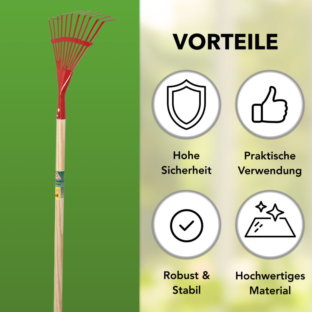 - 1x Gartenrechen mit 8 Zinken (ca. 15 cm breit)