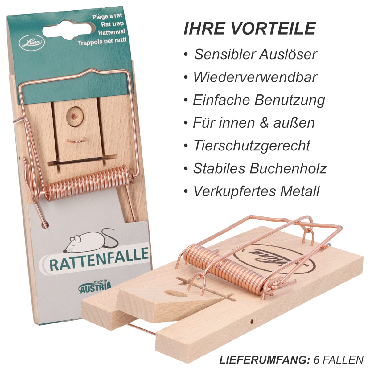 Bekämpfen Sie Ratten effektiv, zuverlässig und besonders wirtschaftlich mit dem 6er Sparset klassischer Ratten Schlagfallen aus stabilem Buchenholz. Dieses Vorteilspack ist ideal für Haushalte, Höfe, Ställe und Gewerbebetriebe, in denen mehrere Fangstellen gleichzeitig bestückt werden müssen.