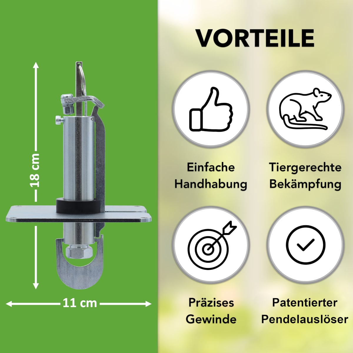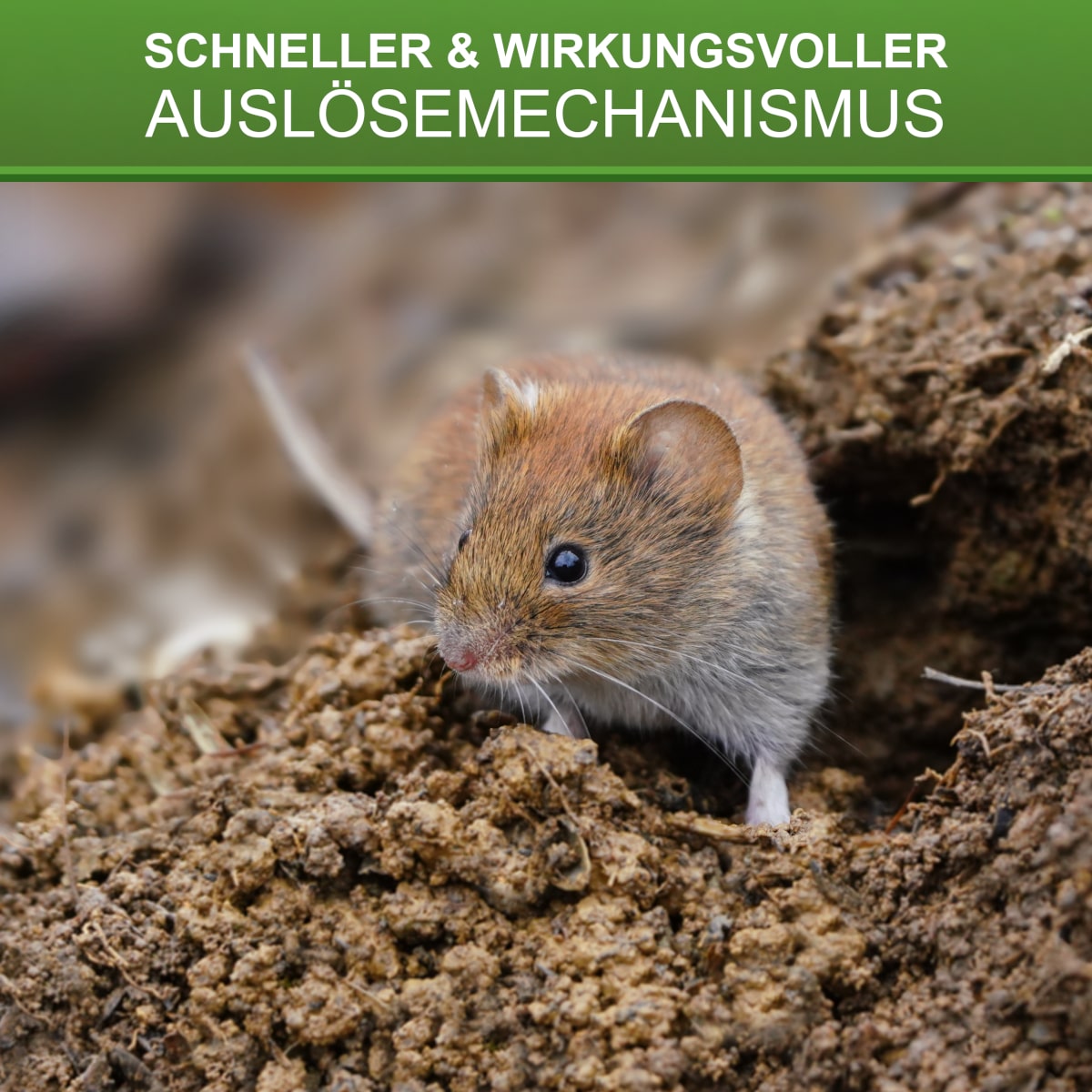 • Blitzschnelle und tierschutzgerechte Tötung der Wühlmaus