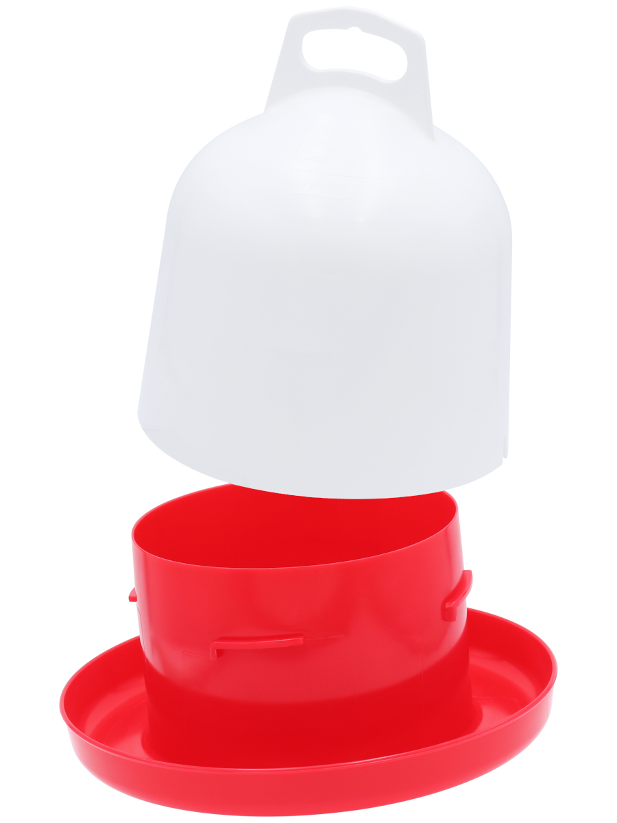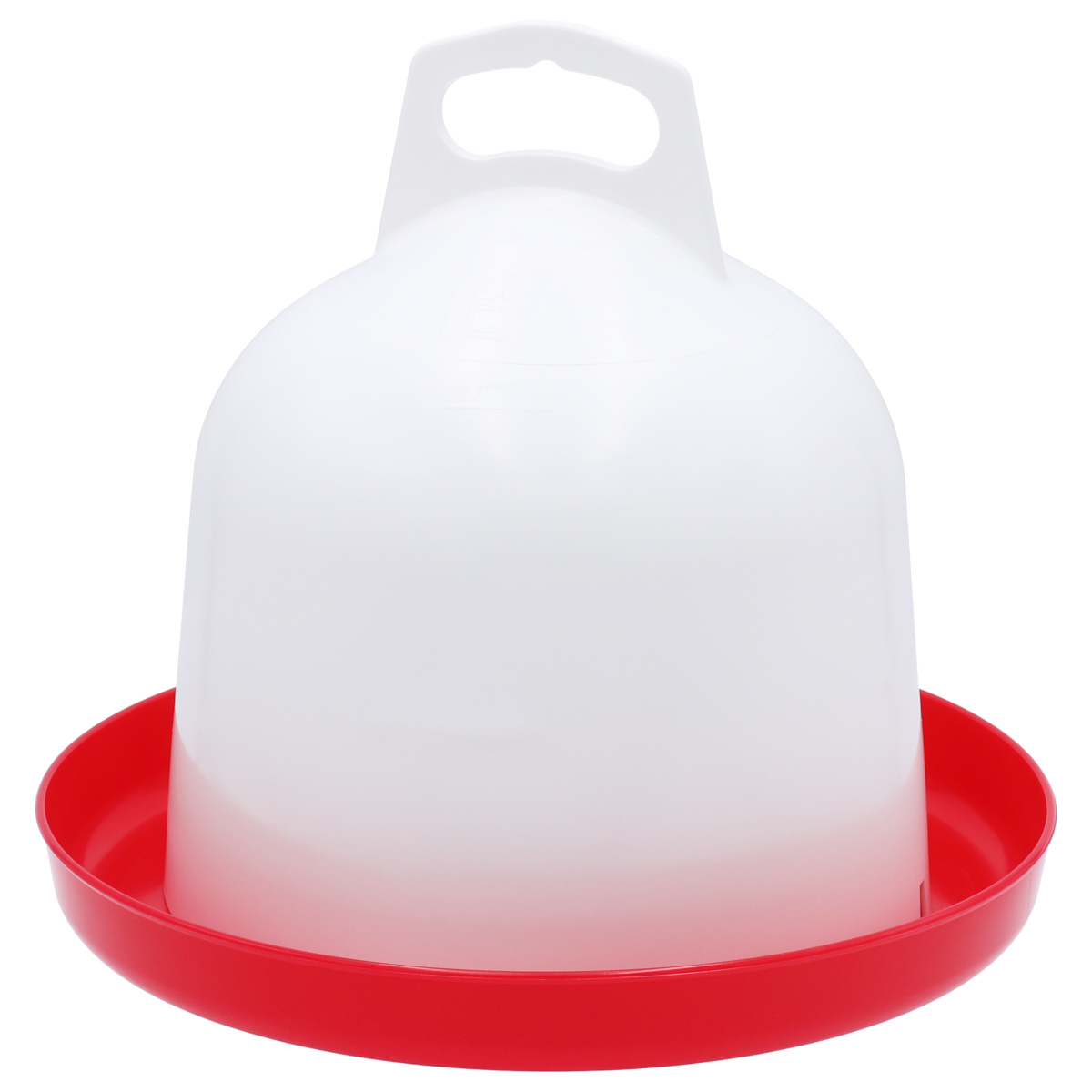 Das Befüllen ist denkbar einfach: Kein lästiges Umstülpen, sondern bequemes Nachfüllen von oben. Der stabile Tragegriff dient zugleich als praktische Aufhängung, sodass die Tränke sowohl am Stallboden als auch erhöht genutzt werden kann. Gefertigt aus schlag- und bruchsicherem Kunststoff ist sie besonders robust und langlebig.