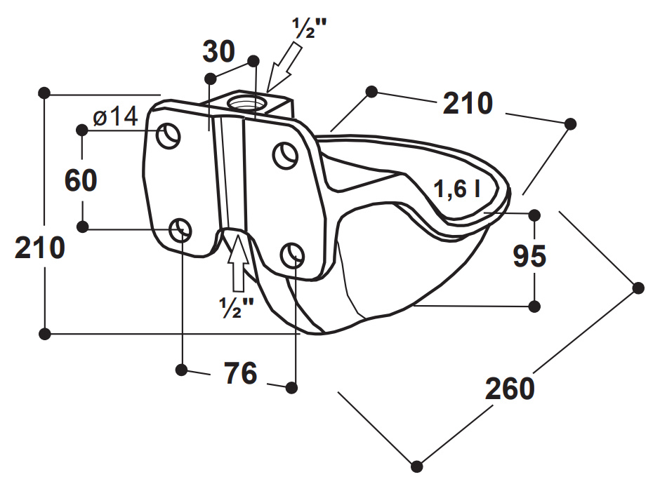 - Anschluss: 1/2 Zoll IG (oben und unten)