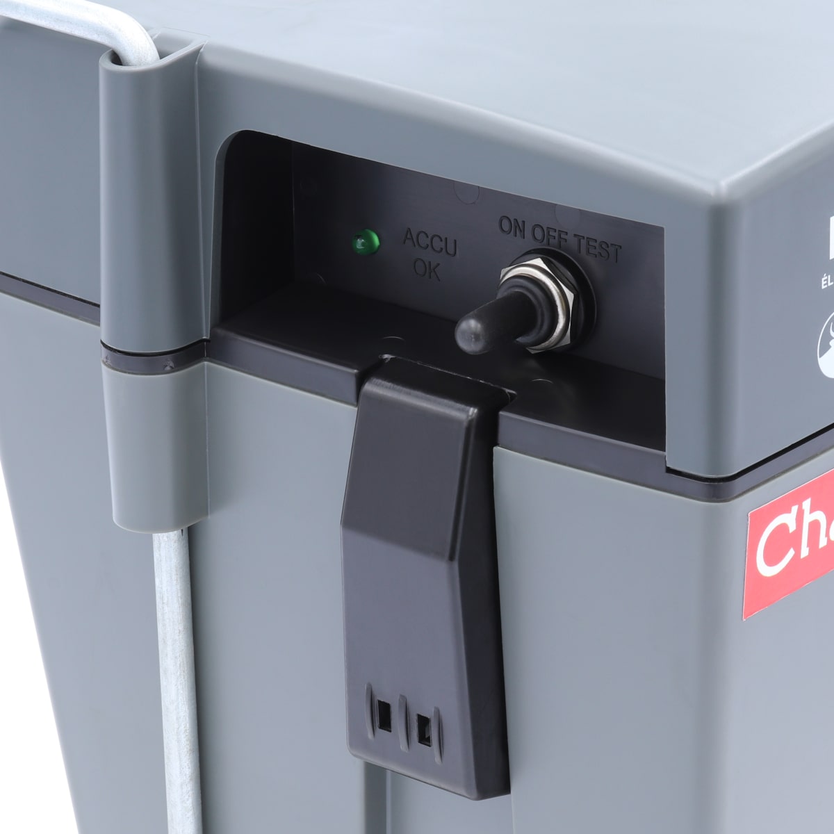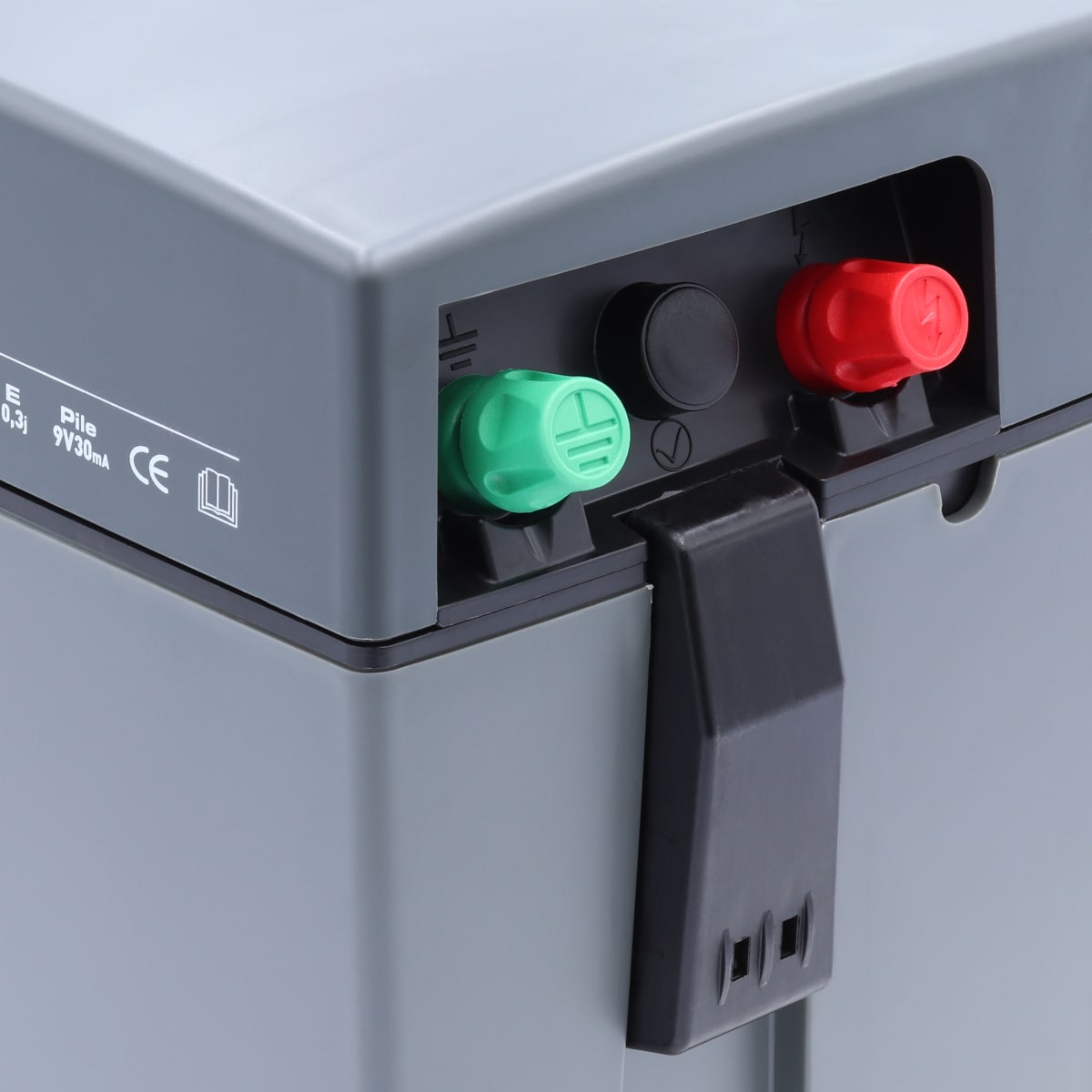 Besonders praktisch ist die optische Funktionskontrolle, mit der Sie den Betriebsstatus jederzeit im Blick haben. Der automatische Verlustausgleich sorgt dafür, dass die Leistung am Zaun stets konstant bleibt – selbst wenn kleinere Verluste auftreten. Das spritzwassergeschützte Gehäuse (IP44) ermöglicht zudem einen zuverlässigen Betrieb bei wiedrigem Wetter. Durch das neue, flexible Design lässt sich das Gerät sowohl mit 9V als auch mit kleinen 12V Batterien betreiben.